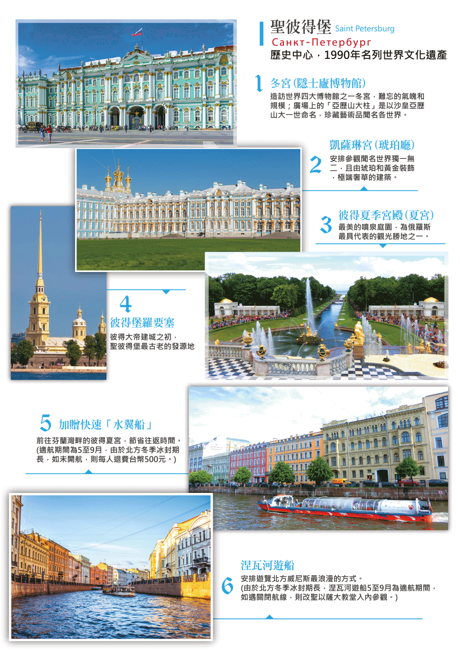 ●【俄羅斯】~ 帶您見證千年的悲與喜,體會古國的風騷與不朽,引領您登入藝術的殿堂,呈現建築、美術、音樂、舞蹈之美;位於歐亞交界,獨立盤旋北極海岸的俄羅斯,一直果腹著一層神秘面紗!在新與舊的激盪下, 多樣文化油然而生。親自走一趟俄羅斯,便能窺探究竟領土跨越歐亞兩大洲,自然而然地融合了東西方兩種文化。俄羅斯重視發展文化事業,建立了許多圖書館、博物館、文化館等群眾性文化設施。俄還重視對博物館珍品和歷史建築 文物的保護,擴建和新建了許多博物館。俄羅斯絕對是您此生不可錯過的美麗國度!今日的俄羅斯正面臨新的轉變,如同蜿蜒而流的莫斯科河,承載著命運的洪流,等待再一次的輝煌!