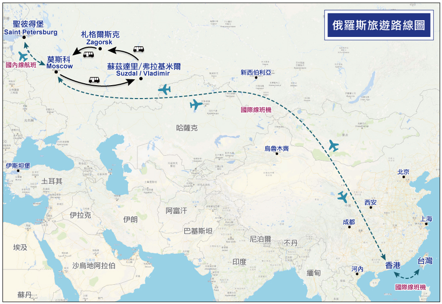 國際段特別選用俄羅斯航空,當日即可抵達俄羅斯首都─莫斯科,旅遊超值新趨勢,
